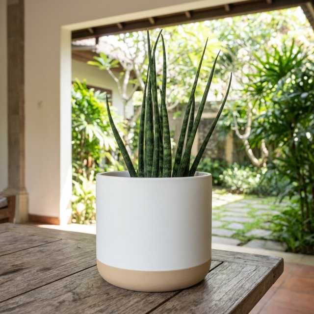 Weißer Übertopf aus Holz – Minimalistisch, schick und natürlich Bringen Sie mit diesem zweifarbigen Übertopf im klaren Design eine zen...