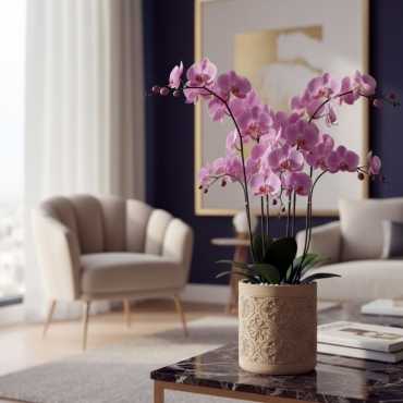 Macetero con ornamento floral de diseño en impresión 3D muy fina y elaborada. Realce sus maceteros (como aquí orquídeas) con este...