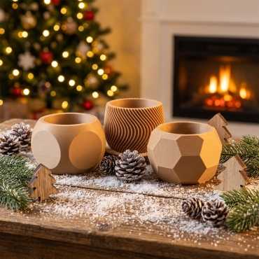 Set van 3 design sierpotten van hout. Ideaal als cadeau. De set bevat een Wave pot, een Flat pot en een Balloon pot. Gemaakt van...